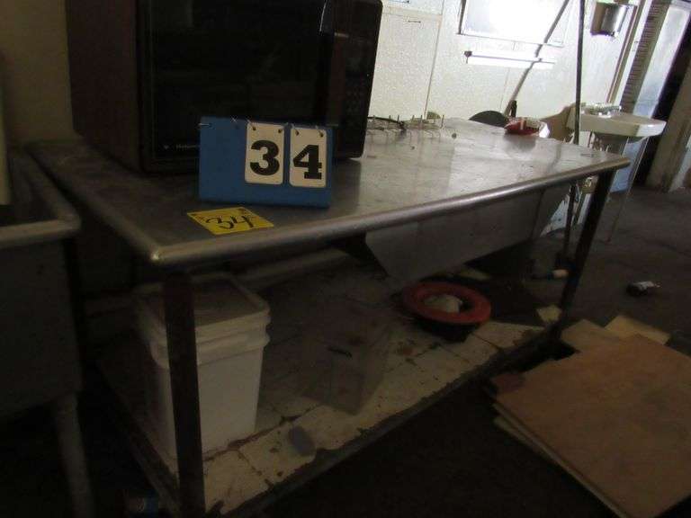 LOT 34 - STAINLESS STEEL TABLE, APPROX. 66” WITH CONTENTS