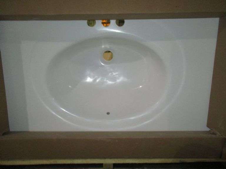 LOT 477 - VANITY TOP, HARDWARE HOUSE CULTURED MARBLE 37" X 22" CENTER BOWL WHT **sold 2x the money**