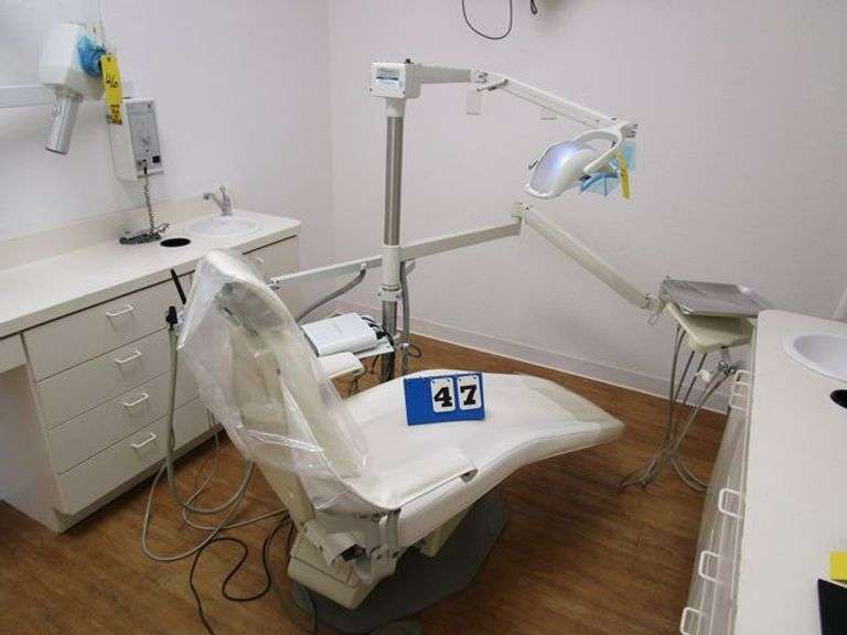 LOT 47 - MARUS DENTAL CHAIR WITH LIGHT, INSTRUMENT TRAY, FOOT CONTROLS
