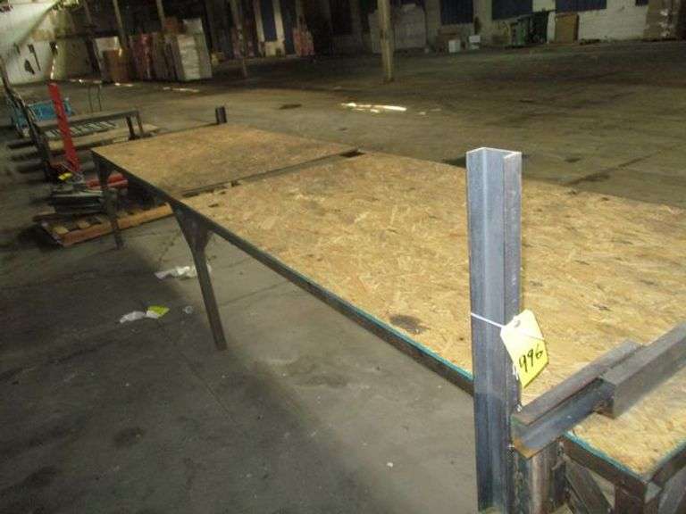LOT 996 - LARGE HEAVY DUTY METAL FRAME WORK BENCH, APPROX. 4' X 16' CO # NO *LOCATED IN BDG HW*