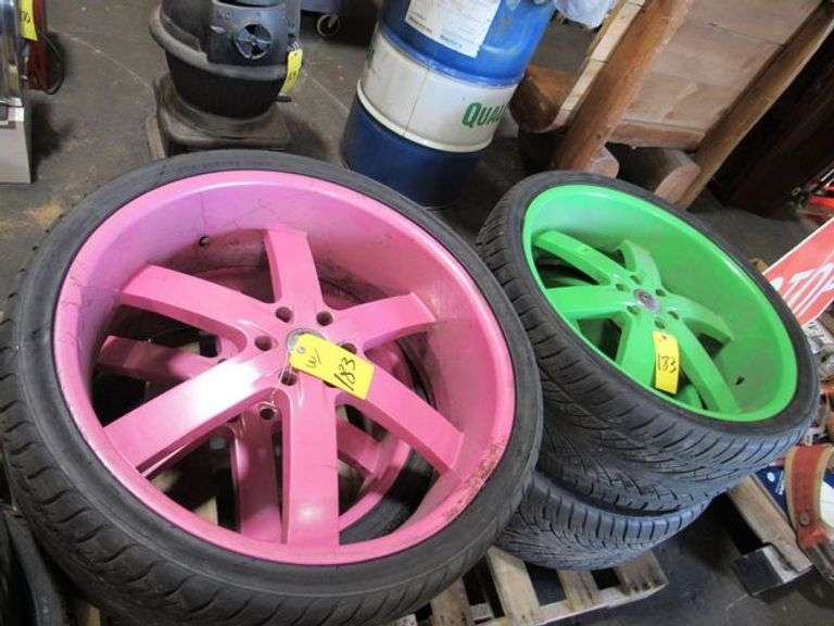 LOT 183 - (2) PINK AND (2) GREEN WHEELS WITH SUNNY SN3870, 305/30ZR26 109 WXL