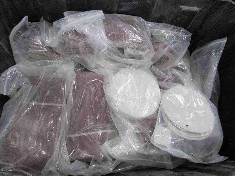 LOT 215 - (1) PLASTIC TOTE WITH (20) SETS OF SANDING BELTS AND SANDING DISCS, 28-PIECES PER SET