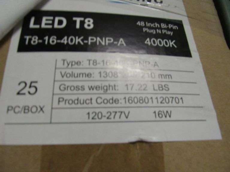 PALLET, (34) BOXES, 25-BULBS PER BOX #SLI-T8-16-40K-PNP-A, LED BULBS