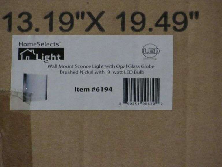 PALLET, (72) WALL MOUNT SCONCE WITH OPAL GLASS GLOBE BN WITH LED BULB #6194