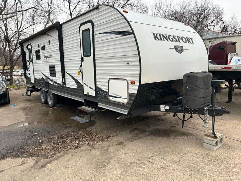 TRAVEL TRAILER, 2017 GULF STREAM COACH KINGSPORT 25’ VIN 1NL1GTL2XH1125294 WITH SOLERA POWER CANOPY, (1) BEDROOM, (1) BATHROOM, KITCHEN, DINING AREA *SLIDING DOOR TO BEDROOM BROKEN*