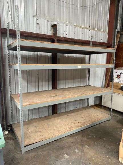 HEAVY DUTY METAL WAREHOUSE SHELF WITH PLYWOOD SHELF INSERTS - 36" X 8' X 8' TALL *DISASSEMBLED* (TARPS NOT INCLUDED* *sold 7x the money*
