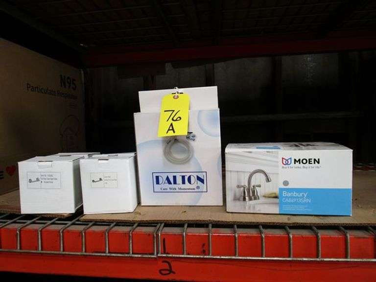 LOT, (1) MOEN BANBURY CA84913SRN BATHROOM FAUCET BN, (1) DALTON HANDHELD SHOWER SPRAYER BS-SH910, (2) DARTMOUTH TOILET PAPER HOLDERS 105204-ORB AND (2) FALL RIVER TOILET PAPER HOLDERS 105292-BN