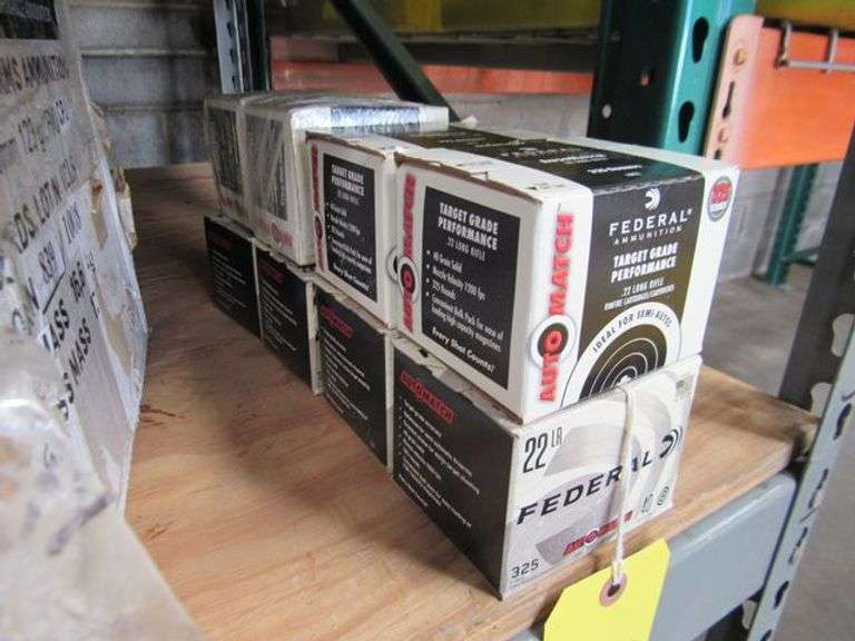 AMMO - (8) BOXES FEDERAL .22 LONG RIFLE AUTO MATCH 325 PER BOX **BOXES OF AMMO MAY NOT BE COMPLETE - BUYERS ARE RECOMMENDED TO ATTEND INSPECTION TUESDAY, SEPTEMBER 30 10AM-3PM**