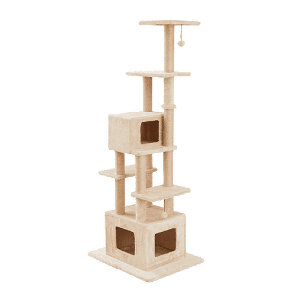 CAT JUMBO TOWER, PONDEROSA, BEIGE, PARTICLE BOARD, JUTE, PAPER, PLUS, LARGE, (2) ENCLOSURES, (6) SCRATCH POSTS, BUILT IN TOYS, ASSEMBLED DIMENSION 72"W x 23.5D x 29.5"H, ANIMAL MAX WEIGHT 15 LB